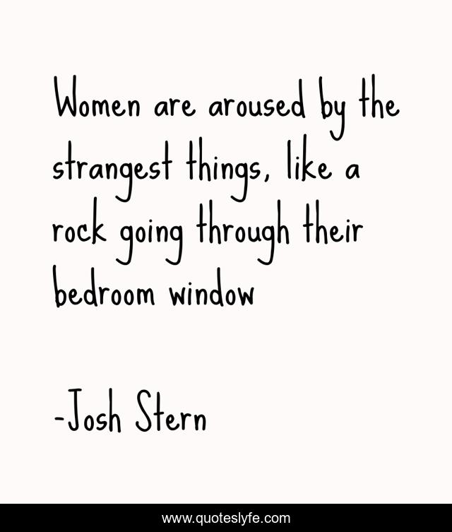 This page presents the quote "Women are aroused by the strangest things, like a rock going through their bedroom window". Author of this quote is Josh Stern. This quote is about comedy, absurd-humor-women-aroused,.