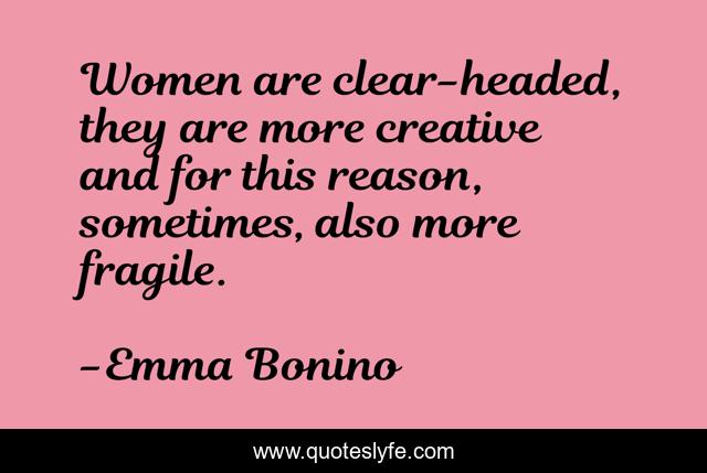 This page presents the quote "Women are clear-headed, they are more creative and for this reason, sometimes, also more fragile.". Author of this quote is Emma Bonino. This quote is about reason, sometimes, creative,.