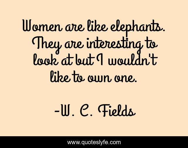 This page presents the quote "Women are like elephants. They are interesting to look at but I wouldn't like to own one.". Author of this quote is W. C. Fields. .
