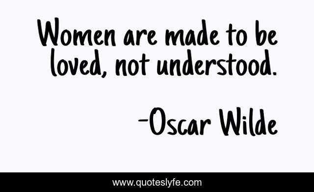 This page presents the quote "Women are made to be loved, not understood.". Author of this quote is Oscar Wilde. This quote is about loved, made, understood,.