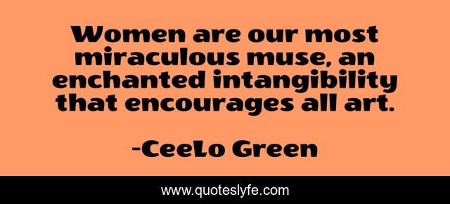 This page presents the quote "Women are our most miraculous muse, an enchanted intangibility that encourages all art.". Author of this quote is CeeLo Green. This quote is about most, art, muse,.