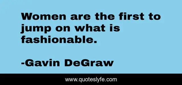 This page presents the quote "Women are the first to jump on what is fashionable.". Author of this quote is Gavin DeGraw. This quote is about jump, women are, first,.