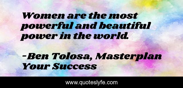 This page presents the quote "Women are the most powerful and beautiful power in the world.". Author of this quote is Ben Tolosa, Masterplan Your Success. This quote is about women-s-rights, women-s-strength, women,.