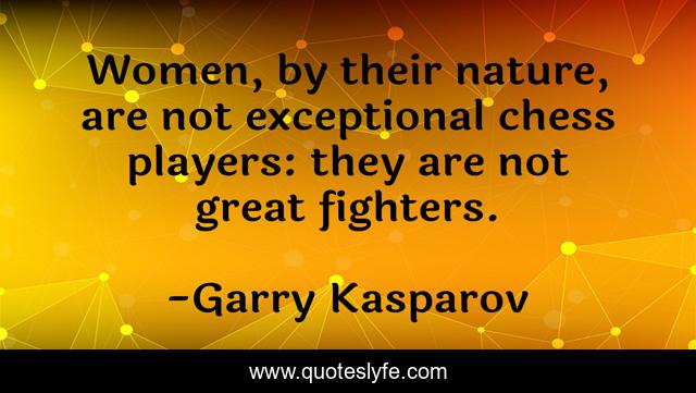 This page presents the quote "Women, by their nature, are not exceptional chess players: they are not great fighters.". Author of this quote is Garry Kasparov. This quote is about great, chess, nature,.