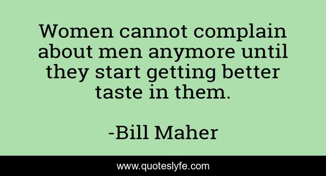 "Bill Maher Quotes." Quoteslyfe.com, 2025. Sat. 06 Dec. 2025. <https://www.quoteslyfe.com/quote/Women-cannot-complain-about-men-anymore-until-34721>.