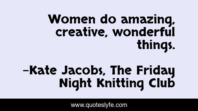 "Kate Jacobs, The Friday Night Knitting Club Quotes." Quoteslyfe.com, 2025. Tue. 09 Dec. 2025. <https://www.quoteslyfe.com/quote/Women-do-amazing-creative-wonderful-things-58819>.