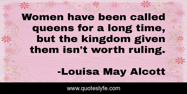 This page presents the quote "Women have been called queens for a long time, but the kingdom given them isn't worth ruling.". Author of this quote is Louisa May Alcott. This quote is about long time, long, time,.