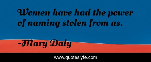 This page presents the quote "Women have had the power of naming stolen from us.". Author of this quote is Mary Daly. This quote is about naming, power, us,.
