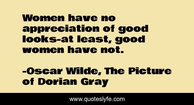 "Oscar Wilde, The Picture of Dorian Gray Quotes." Quoteslyfe.com, 2025. Fri. 05 Dec. 2025. <https://www.quoteslyfe.com/quote/Women-have-no-appreciation-of-good-looks-10130>.