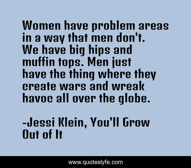 This page presents the quote "Women have problem areas in a way that men don't. We have big hips and muffin tops. Men just have the thing where they create wars and wreak havoc all over the globe.". Author of this quote is Jessi Klein, You'll Grow Out of It. This quote is about humor, feminism,.