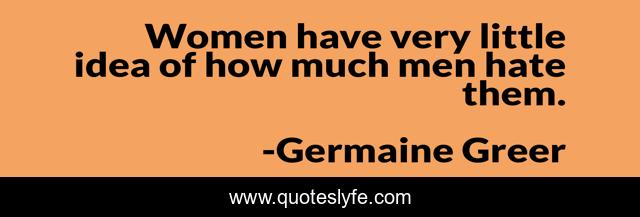 This page presents the quote "Women have very little idea of how much men hate them.". Author of this quote is Germaine Greer. This quote is about men, hate, idea,.