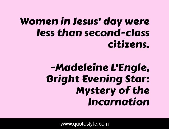 "Madeleine L'Engle, Bright Evening Star: Mystery of the Incarnation Quotes." Quoteslyfe.com, 2025. Fri. 05 Dec. 2025. <https://www.quoteslyfe.com/quote/Women-in-Jesus-day-were-less-than-134717>.