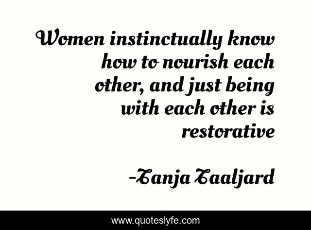 This page presents the quote "Women instinctually know how to nourish each other, and just being with each other is restorative". Author of this quote is Tanja Taaljard. This quote is about women-s-inspirational, love, friendship, female-empowerment, women-s-strength, female-friendship, sisterhood, affection, women,.