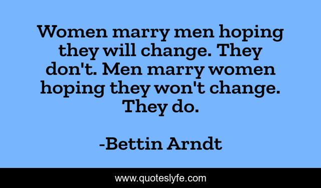 "Bettin Arndt Quotes." Quoteslyfe.com, 2025. Sun. 07 Dec. 2025. <https://www.quoteslyfe.com/quote/Women-marry-men-hoping-they-will-change-77073>.