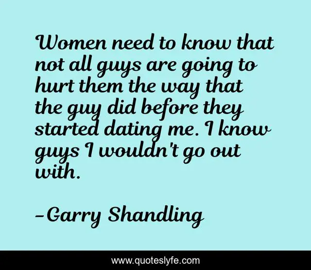 This page presents the quote "Women need to know that not all guys are going to hurt them the way that the guy did before they started dating me. I know guys I wouldn't go out with.". Author of this quote is Garry Shandling. This quote is about me, women, hurt,.