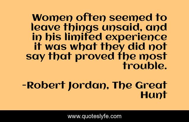 "Robert Jordan, The Great Hunt Quotes." Quoteslyfe.com, 2025. Tue. 09 Dec. 2025. <https://www.quoteslyfe.com/quote/Women-often-seemed-to-leave-things-unsaid-58484>.