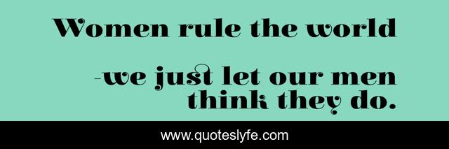 "we just let our men think they do. Quotes." Quoteslyfe.com, 2025. Sun. 07 Dec. 2025. <https://www.quoteslyfe.com/quote/Women-rule-the-world-127783>.