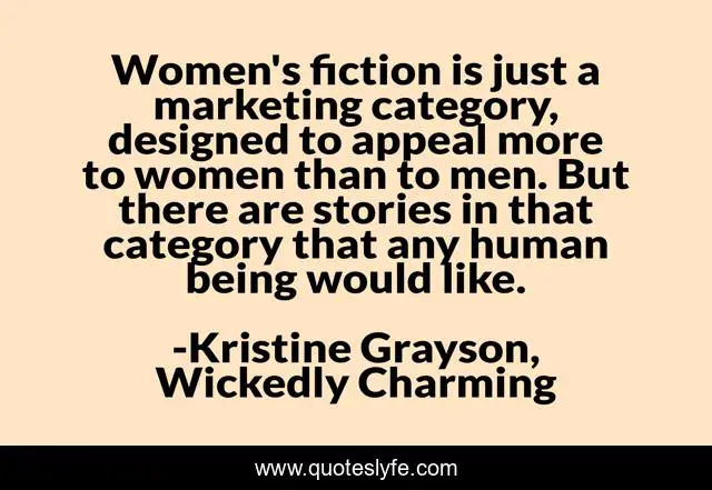 "Kristine Grayson, Wickedly Charming Quotes." Quoteslyfe.com, 2025. Mon. 08 Dec. 2025. <https://www.quoteslyfe.com/quote/Women-s-fiction-is-just-a-marketing-18956>.