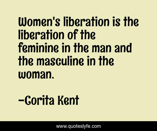 This page presents the quote "Women's liberation is the liberation of the feminine in the man and the masculine in the woman.". Author of this quote is Corita Kent. This quote is about feminine, woman, man,.