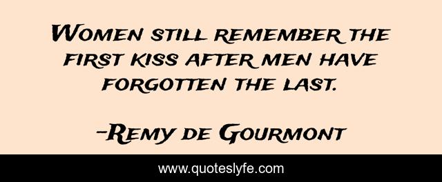 "Remy de Gourmont Quotes." Quoteslyfe.com, 2025. Mon. 08 Dec. 2025. <https://www.quoteslyfe.com/quote/Women-still-remember-the-first-kiss-after-302398>.