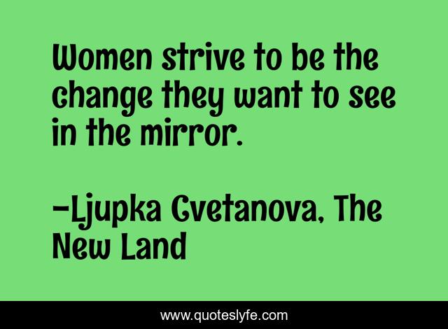 "Ljupka Cvetanova, The New Land Quotes." Quoteslyfe.com, 2025. Mon. 08 Dec. 2025. <https://www.quoteslyfe.com/quote/Women-strive-to-be-the-change-they-23080>.