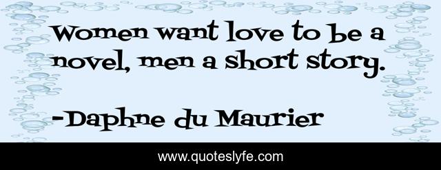 This page presents the quote "Women want love to be a novel, men a short story.". Author of this quote is Daphne du Maurier. This quote is about men, love, affection, short,.