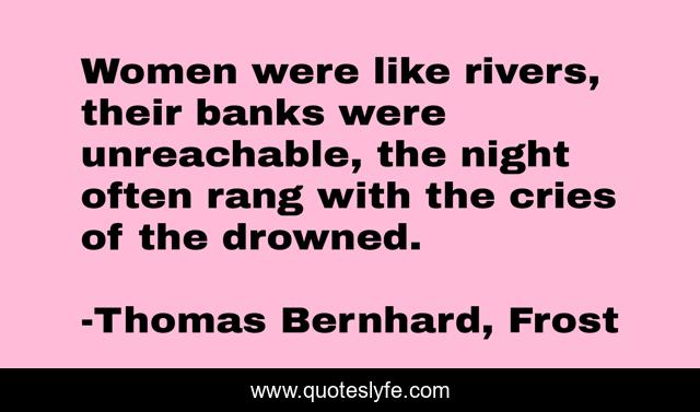 This page presents the quote "Women were like rivers, their banks were unreachable, the night often rang with the cries of the drowned.". Author of this quote is Thomas Bernhard, Frost. .