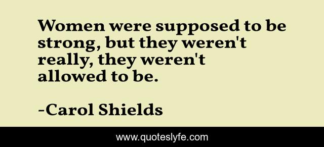 "Carol Shields Quotes." Quoteslyfe.com, 2025. Sat. 06 Dec. 2025. <https://www.quoteslyfe.com/quote/Women-were-supposed-to-be-strong-but-101990>.