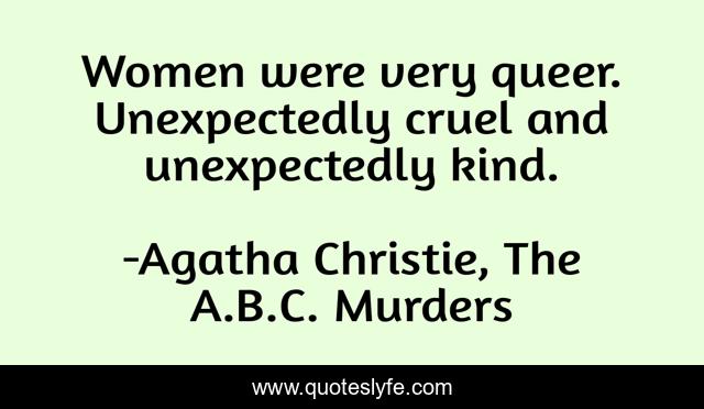 This page presents the quote "Women were very queer. Unexpectedly cruel and unexpectedly kind.". Author of this quote is Agatha Christie, The A.B.C. Murders. .