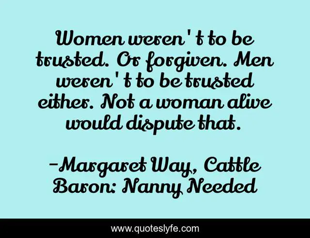 "Margaret Way, Cattle Baron: Nanny Needed Quotes." Quoteslyfe.com, 2025. Sat. 06 Dec. 2025. <https://www.quoteslyfe.com/quote/Women-weren-t-to-be-trusted-Or-119971>.