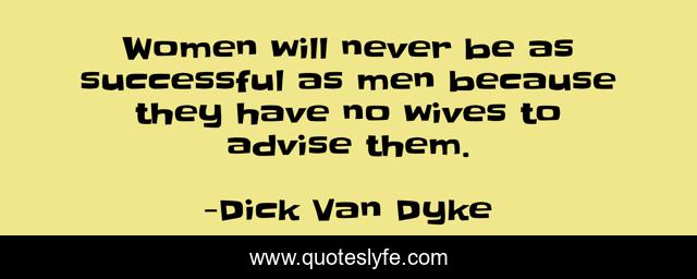 This page presents the quote "Women will never be as successful as men because they have no wives to advise them.". Author of this quote is Dick Van Dyke. This quote is about successful, men,.