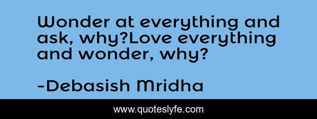 This page presents the quote "Wonder at everything and ask, why?Love everything and wonder, why?". Author of this quote is Debasish Mridha. This quote is about life, love, knowledge, inspirational, intelligence, philosophy, wisdom, quotes, affection,.