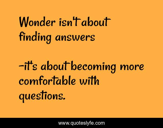 "it's about becoming more comfortable with questions. Quotes." Quoteslyfe.com, 2025. Fri. 05 Dec. 2025. <https://www.quoteslyfe.com/quote/Wonder-isn-t-about-finding-answers-151764>.