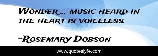 This page presents the quote "Wonder ... music heard in the heart is voiceless.". Author of this quote is Rosemary Dobson. .