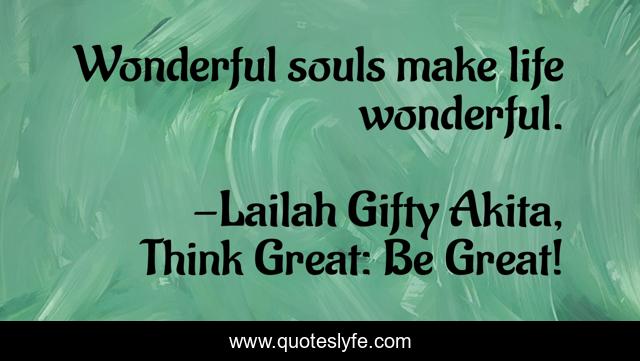 "Lailah Gifty Akita, Think Great: Be Great! Quotes." Quoteslyfe.com, 2025. Sat. 06 Dec. 2025. <https://www.quoteslyfe.com/quote/Wonderful-souls-make-life-wonderful-86375>.