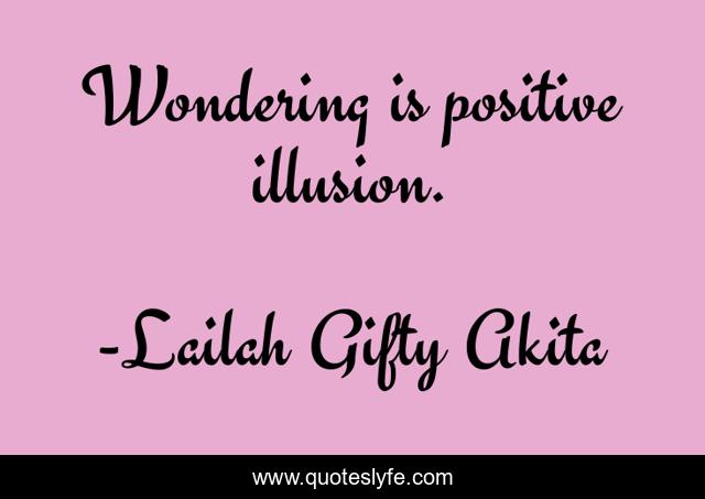 "Lailah Gifty Akita Quotes." Quoteslyfe.com, 2025. Fri. 05 Dec. 2025. <https://www.quoteslyfe.com/quote/Wondering-is-positive-illusion-166369>.