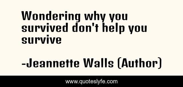 This page presents the quote "Wondering why you survived don't help you survive". Author of this quote is Jeannette Walls (Author). .