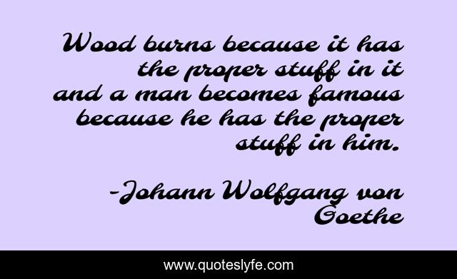 This page presents the quote "Wood burns because it has the proper stuff in it and a man becomes famous because he has the proper stuff in him.". Author of this quote is Johann Wolfgang von Goethe. This quote is about wood, him, man,.