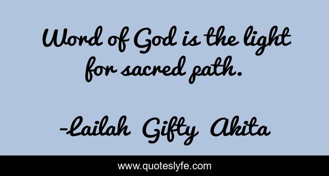This page presents the quote "Word of God is the light for sacred path.". Author of this quote is Lailah Gifty Akita. This quote is about god, light, scriptures, path,.