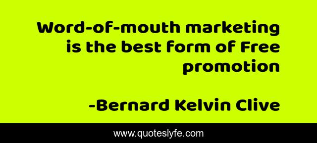 "Bernard Kelvin Clive Quotes." Quoteslyfe.com, 2025. Mon. 08 Dec. 2025. <https://www.quoteslyfe.com/quote/Word-of-mouth-marketing-is-the-best-237481>.