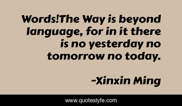 This page presents the quote "Words!The Way is beyond language, for in it there is no yesterday no tomorrow no today.". Author of this quote is Xinxin Ming. .