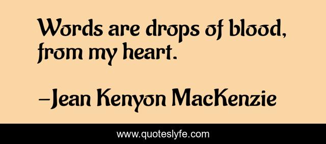 "Jean Kenyon MacKenzie Quotes." Quoteslyfe.com, 2025. Fri. 05 Dec. 2025. <https://www.quoteslyfe.com/quote/Words-are-drops-of-blood-from-my-243684>.