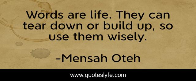 "Mensah Oteh Quotes." Quoteslyfe.com, 2025. Fri. 05 Dec. 2025. <https://www.quoteslyfe.com/quote/Words-are-life-They-can-tear-down-49152>.