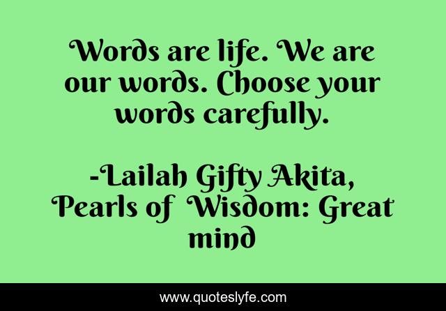 "Lailah Gifty Akita, Pearls of Wisdom: Great mind Quotes." Quoteslyfe.com, 2025. Mon. 08 Dec. 2025. <https://www.quoteslyfe.com/quote/Words-are-life-We-are-our-words-126049>.