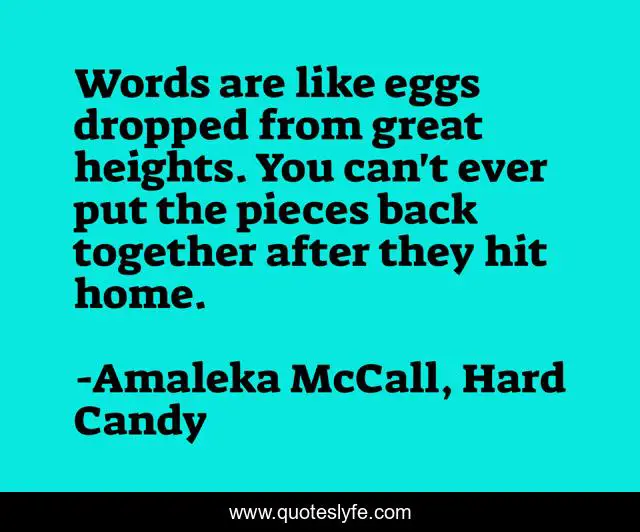 "Amaleka McCall, Hard Candy Quotes." Quoteslyfe.com, 2025. Fri. 05 Dec. 2025. <https://www.quoteslyfe.com/quote/Words-are-like-eggs-dropped-from-great-37308>.