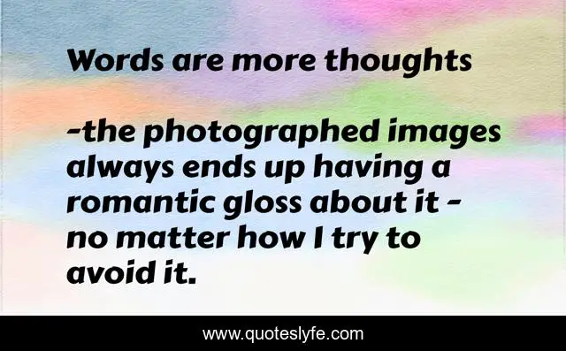 "the photographed images always ends up having a romantic gloss about it - no matter how I try to avoid it. Quotes." Quoteslyfe.com, 2025. Fri. 05 Dec. 2025. <https://www.quoteslyfe.com/quote/Words-are-more-thoughts-66293>.