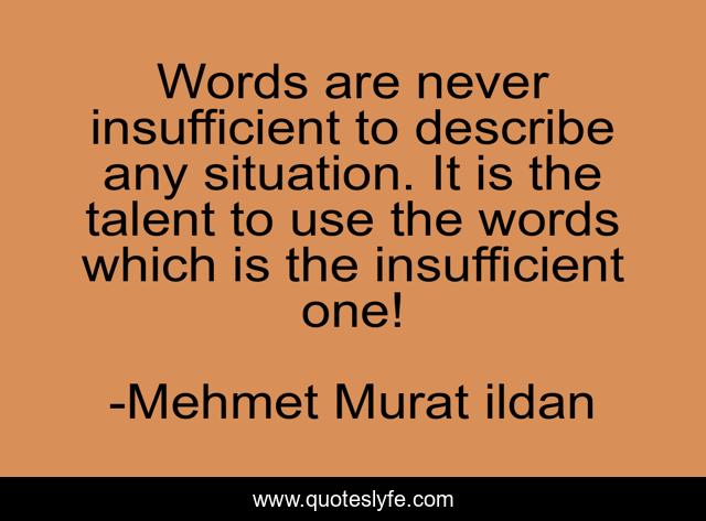 This page presents the quote "Words are never insufficient to describe any situation. It is the talent to use the words which is the insufficient one!". Author of this quote is Mehmet Murat ildan. .