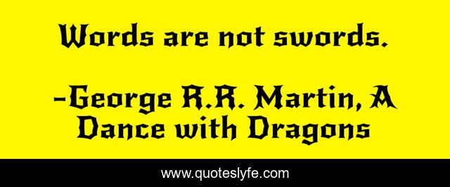 This page presents the quote "Words are not swords.". Author of this quote is George R.R. Martin, A Dance with Dragons. This quote is about swords, words,.