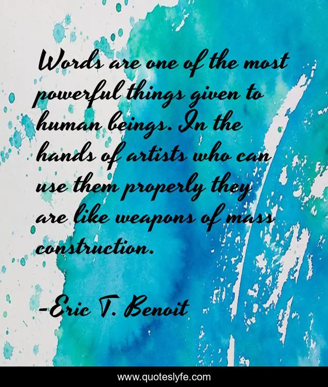 "Eric T. Benoit Quotes." Quoteslyfe.com, 2025. Fri. 05 Dec. 2025. <https://www.quoteslyfe.com/quote/Words-are-one-of-the-most-powerful-27990>.
