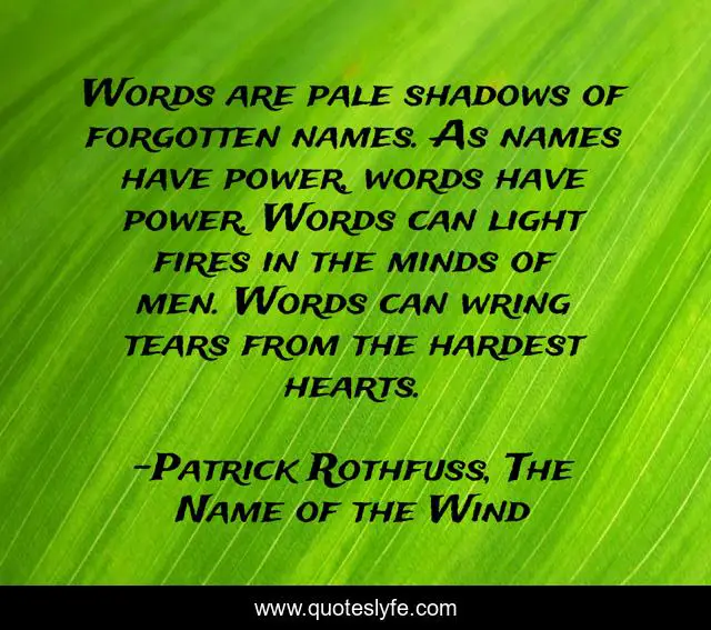 "Patrick Rothfuss, The Name of the Wind Quotes." Quoteslyfe.com, 2025. Sun. 07 Dec. 2025. <https://www.quoteslyfe.com/quote/Words-are-pale-shadows-of-forgotten-names-112447>.